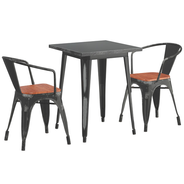Lancaster Table Seating Alloy Series 24 X 24 Distressed Black Dining Height Table With 2